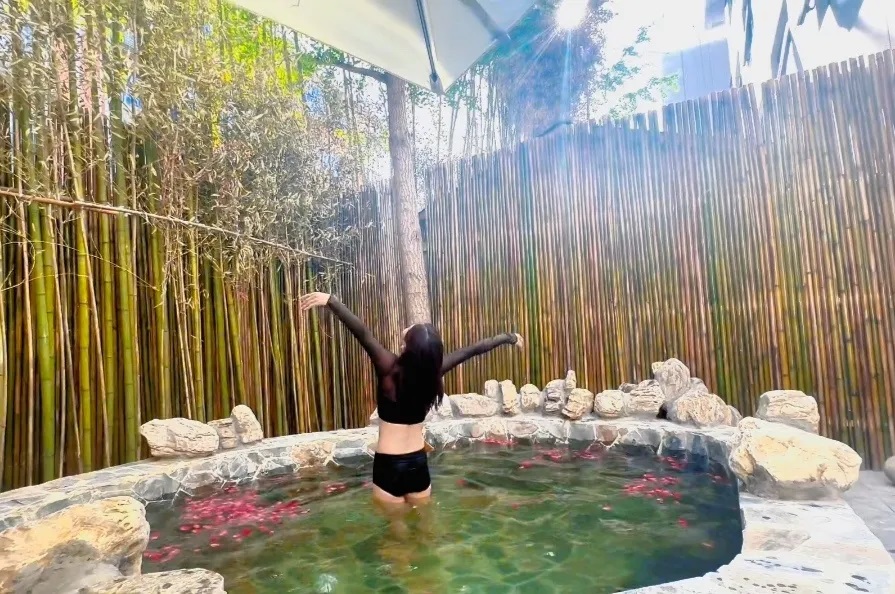 清幽雅致的溫泉私湯套房,恰如遺世獨立的桃源秘境。踏入其間,仿若置身于一卷潑墨山水畫中,身畔竹影婆娑,仿佛天地間的紛擾盡皆遠離。